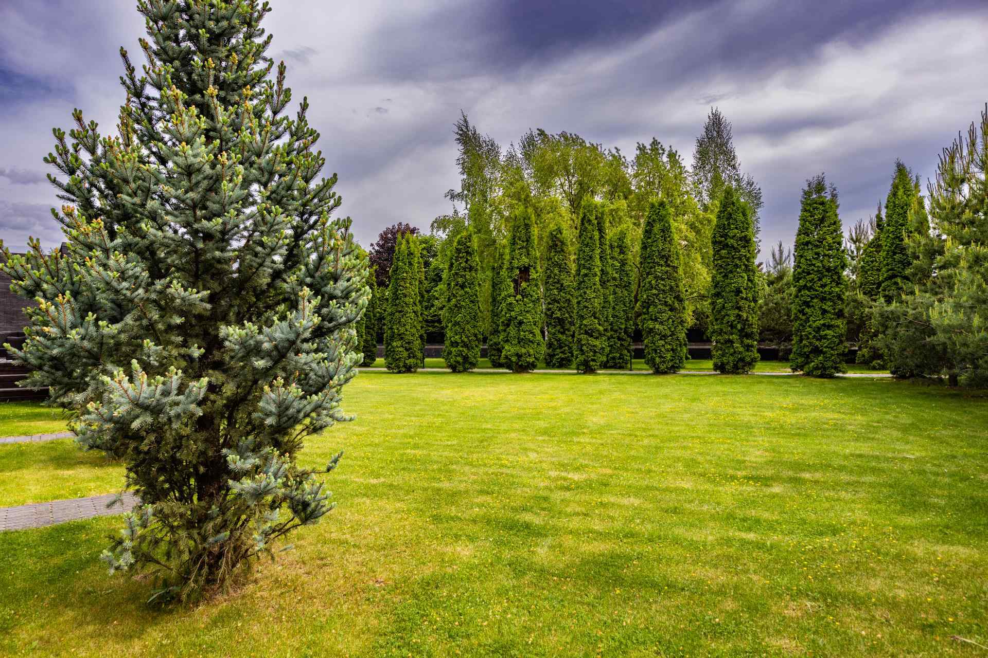 Дом расположен на участке общей площадью 50 соток. Выполнен ландшафтный дизайн с хвойными растениями, прогулочными дорожками и местами для отдыха. Участок приватный, огорожен живой изгородью.